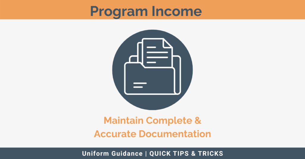 Program income may need to be reported and reflected on the Schedule of Expenditures of Federal Awards, so it’s crucial to maintain complete and robust documentation surrounding all program income receivedÂ