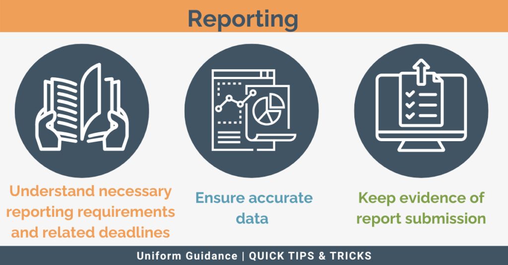 The tenth compliance requirement surrounds reporting. This requirement governs how recipients of federal awards must submit accurate, timely and complete reports to demonstrate how funds were used and whether program goals are being met. These reports help ensure transparency, accountability and proper stewardship of federal funds. Report types may include both financial and performance-based metrics.Â