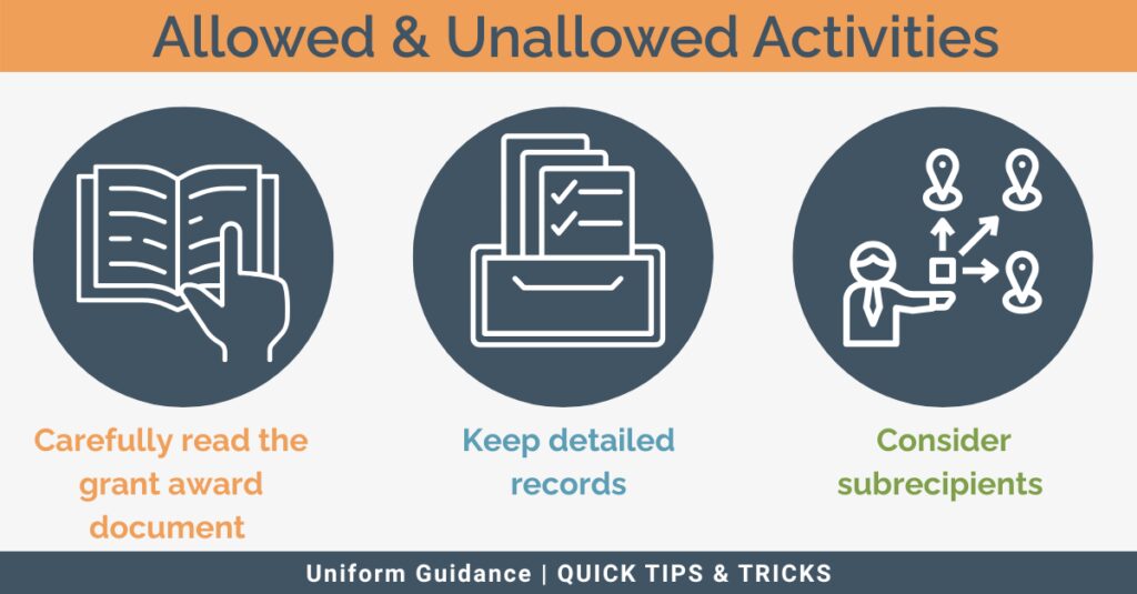 - Thoroughly read the grant award agreement to ensure you understand what the funds can and cannot be used for.Â