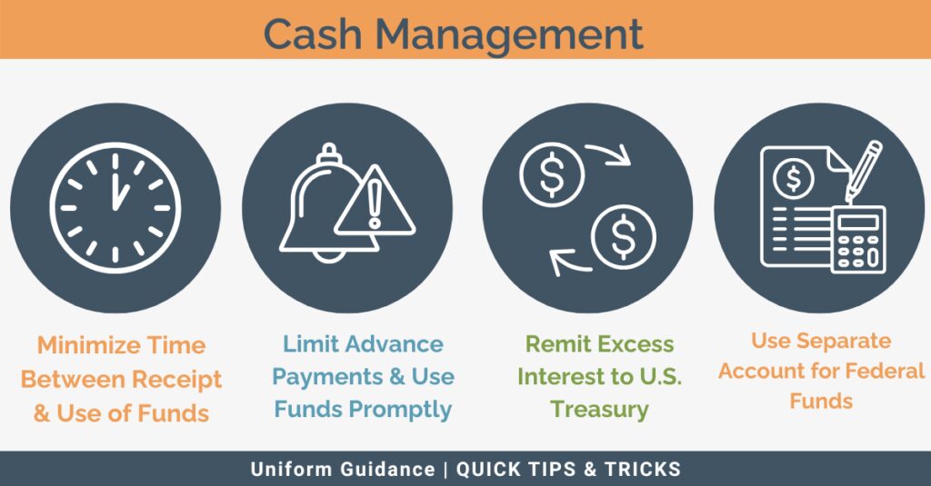 - Ensure the time between when federal funds are received and when they are used is minimal.Â